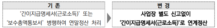 1. ȸ¿ø´ÔÀÇ °Ç°°ú »ç¾÷ÀÇ ¹øÃ¢À» ±â¿øµå¸³´Ï´Ù. 2. ±¹¹Î°Ç°º¸Çè°ø´ÜÀÇ ¡®2025³âµµ ±Í¼Ó Á÷Àå°¡ÀÔÀÚ(±Ù·ÎÀÚ) °Ç°º¸Çè·á ¿¬¸»Á¤»ê ¾È³»¡¯ ÇùÁ¶ ¿äû¿¡ ´ëÇØ ¾È³»µå¸®¿À´Ï ¾÷¹«¿¡ Âü°íÇϽñ⠹ٶó¸ç, »ó¼¼ÇÑ ³»¿ëÀº ºÙÀÓÀ» È®ÀÎÇÏ¿© Áֽñ⠹ٶø´Ï´Ù. ¡á 2026³â ¿¬¸»Á¤»ê º¯°æ»çÇ×: 2025³â ±Í¼ÓºÐ °Ç°º¸Çè·á ¿¬¸»Á¤»êÀº ±¹¼¼Ã»ÀÚ·á ¡®°£ÀÌÁö±Þ¸í¼¼¼(±Ù·Î¼Òµæ)¡¯·Î ¿¬°èÁ¤»êÇÕ´Ï´Ù.  ´Ù¸¸, ±¹¼¼Ã»¿¡ Á¦ÃâÇÑ ¡®°£ÀÌÁö±Þ¸í¼¼¼(±Ù·Î¼Òµæ)¡¯°¡ ¾ø°Å³ª, °ø´Ü°ú ±¹¼¼Ã»ÀÇ º¸¼öÃÑ¾× ½Å°í ´ë»ó±Ý¾×ÀÌ ¼·Î ´Ù¸¥ °æ¿ì µîÀ¸·Î º¸¼öÃѾ×Å뺸¼·Î ¿¬¸»Á¤»ê ½Å°í¸¦ ¿øÇÒ °æ¿ì¿¡´Â ¡®°£ÀÌÁö±Þ¸í¼¼¼ ¿¬°èÁ¤»ê Á¦¿Ü(Ãë¼Ò) ½Åû¼¡¯¸¦ ÀÛ¼ºÇÏ¿© Á¦ÃâÇÏ¿© Áֽñ⠹ٶø´Ï´Ù.