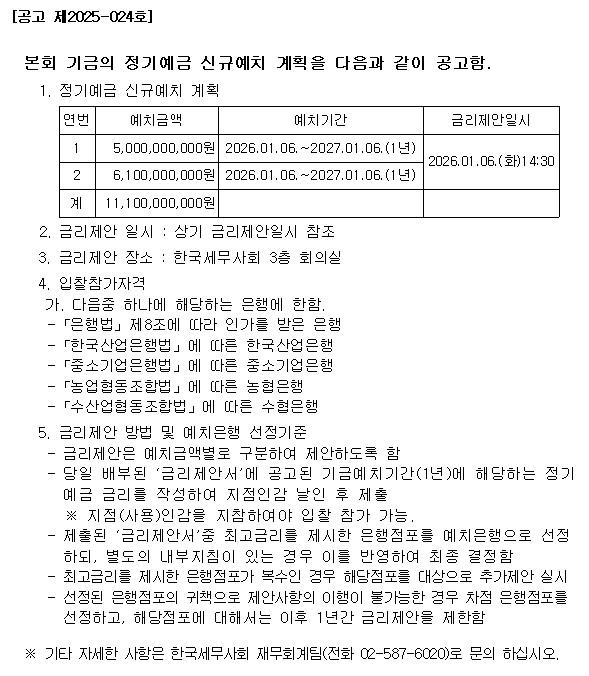 Á¤±â¿¹±Ý ½Å±Ô¿¹Ä¡ °èȹ °ø°í