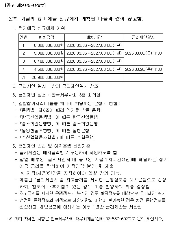 Á¤±â¿¹±Ý ½Å±Ô¿¹Ä¡ °èȹ °ø°í