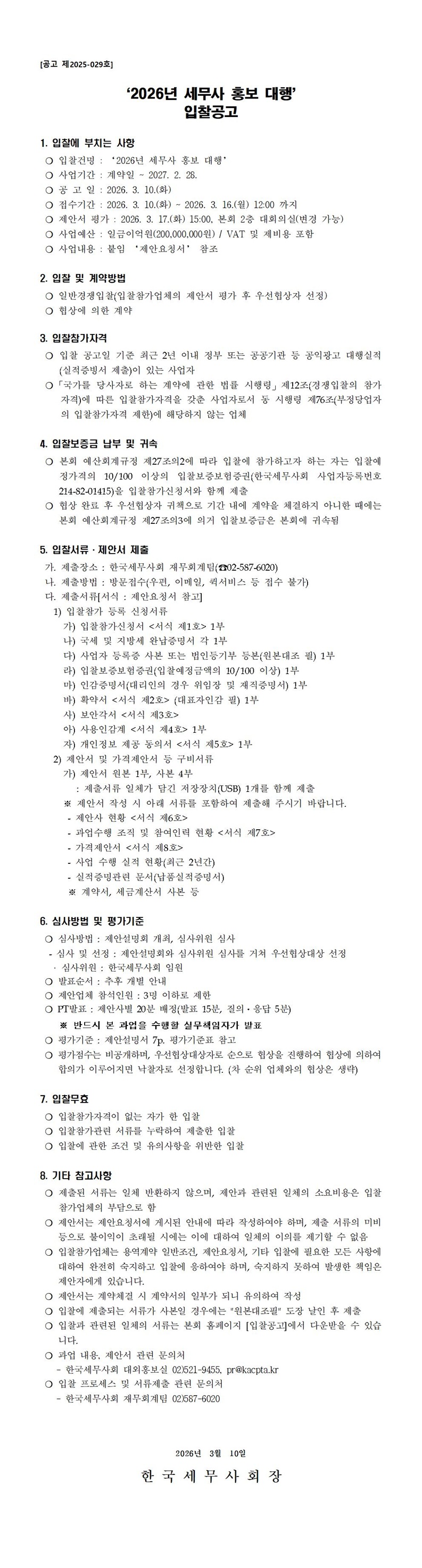 [ÀÔÂû°ø°í]¡¸2026³â ¼¼¹«»ç È«º¸ ´ëÇࡹ¾÷ü ¼±Á¤ ÀÔÂû °ø°í