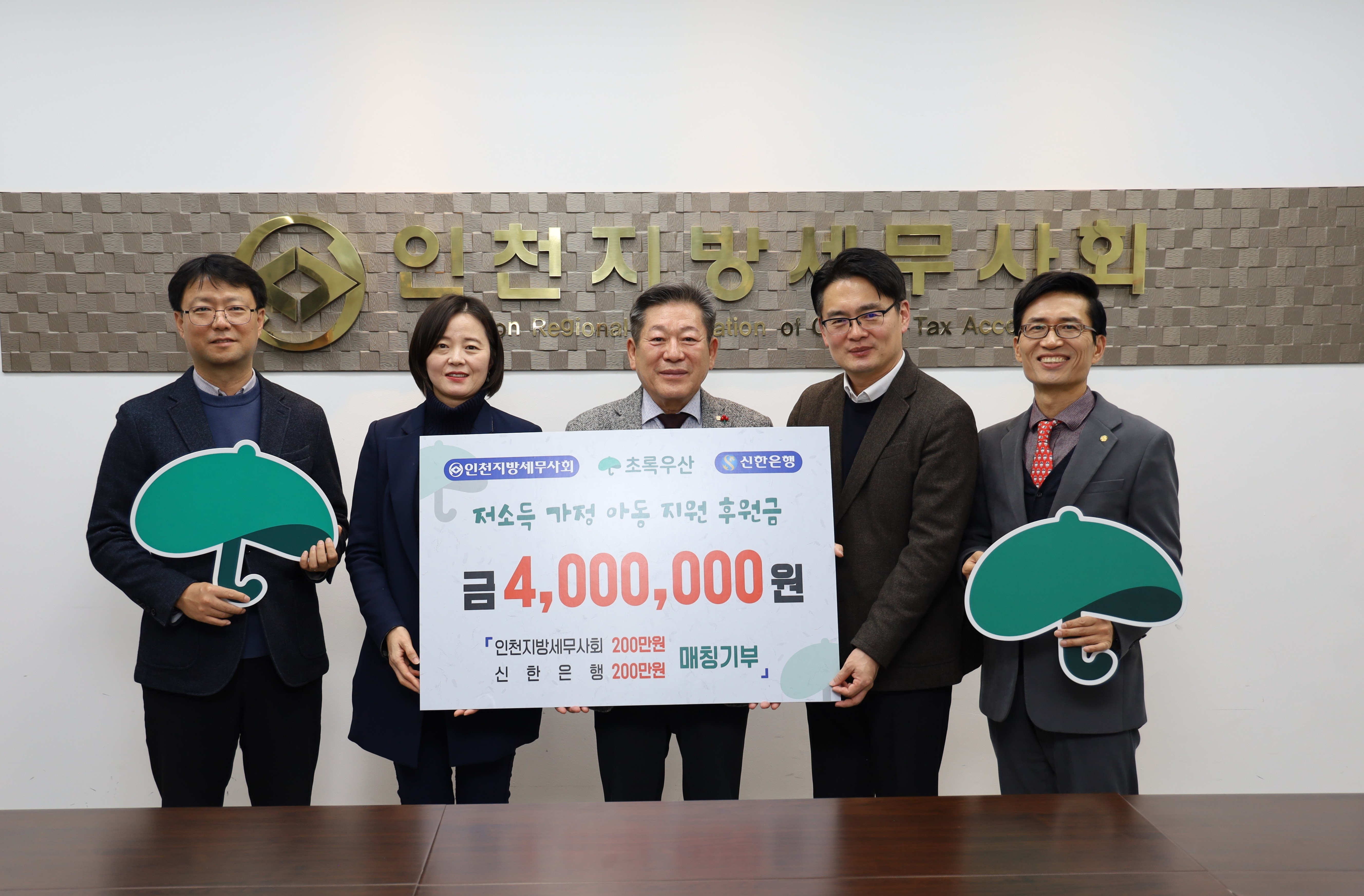 이번 전달식은 인천지방세무사회와 신한은행이 체결한 매칭기부 협약에 따라 마련된 것으로 인천지방세무사회 기부액에 신한은행이 동일한 금액을 더해 각 200만원씩 총 400만원의 후원금이 조성되었다. 후원금은 초록우산을 통해 생계비 지원, 의료비 지원, 보육비 지원 등 아동 복지 사업에 사용될 예정이다.