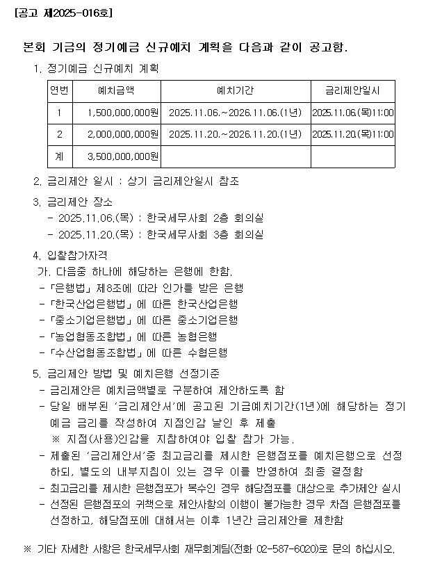 Á¤±â¿¹±Ý ½Å±Ô¿¹Ä¡ °èȹ °ø°í