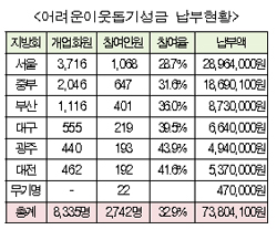 ÀÌ ¼º±ÝÀº Áö¹æ¼¼¹«»çȸ¸¦ ÅëÇØ Áö¿ªÀÇ ¾î·Á¿î ÀÌ¿ô¿¡°Ô Àü´ÞµÈ´Ù. ÀÔ±ÝÈ®ÀÎÀº ȨÆäÀÌÁö [¼¼¹«»çÀü¿ë]¿¡¼ È®ÀÎÇÒ ¼ö ÀÖÀ¸¸ç, ¿µ¼öÁõ Ãâ·Âµµ °¡´ÉÇÏ´Ù.