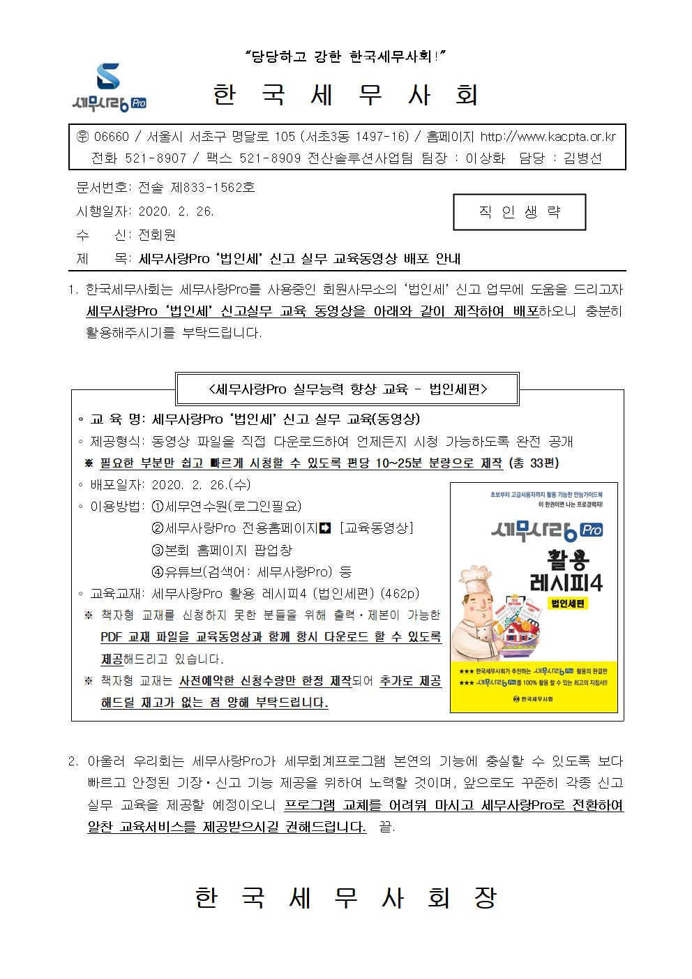 | 세무사랑Pro '법인세' 신고 실무 교육동영상 배포 안내 |