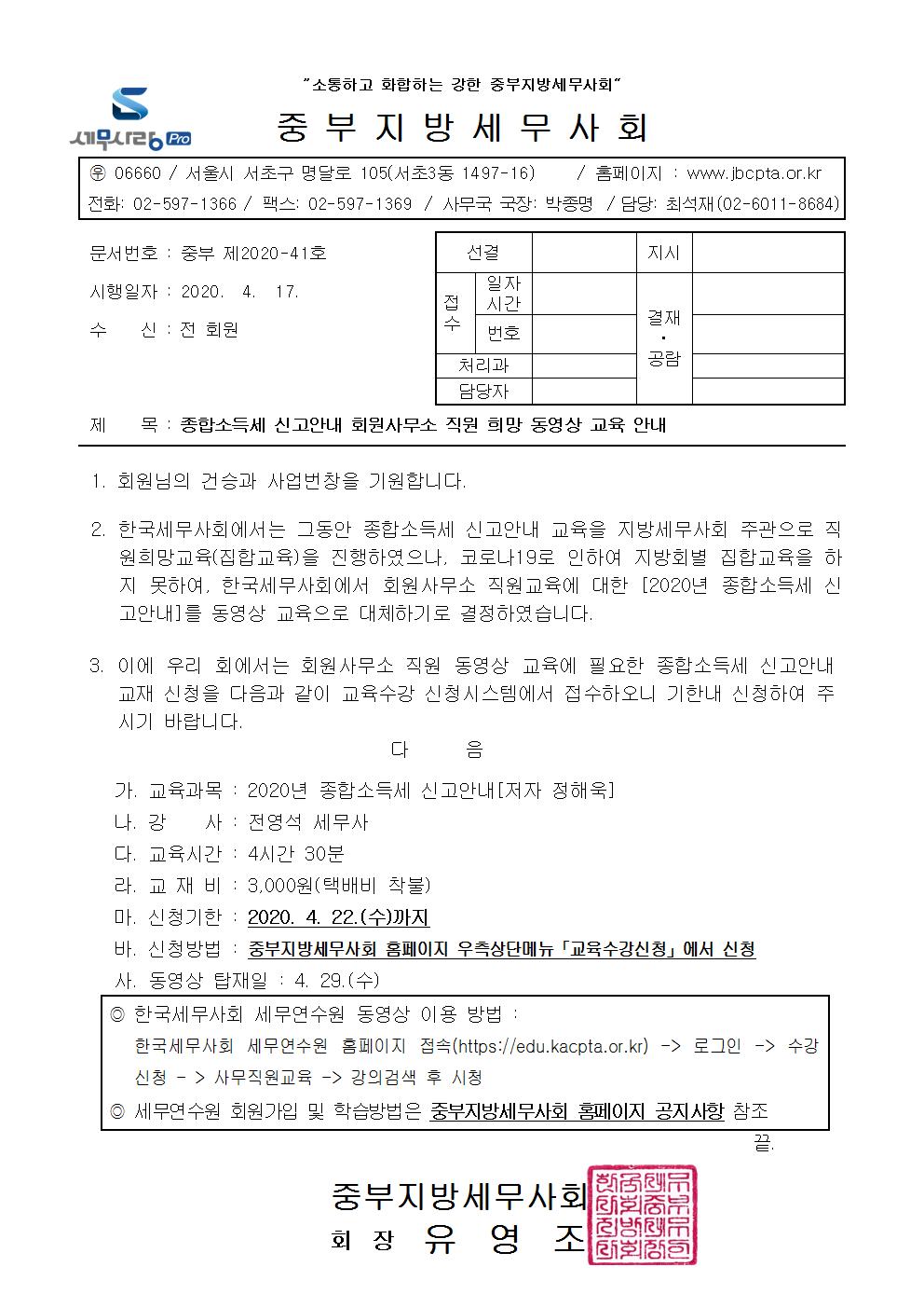 | 종합소득세 신고안내 회원사무소 직원 희망 동영상 교육 안내 |