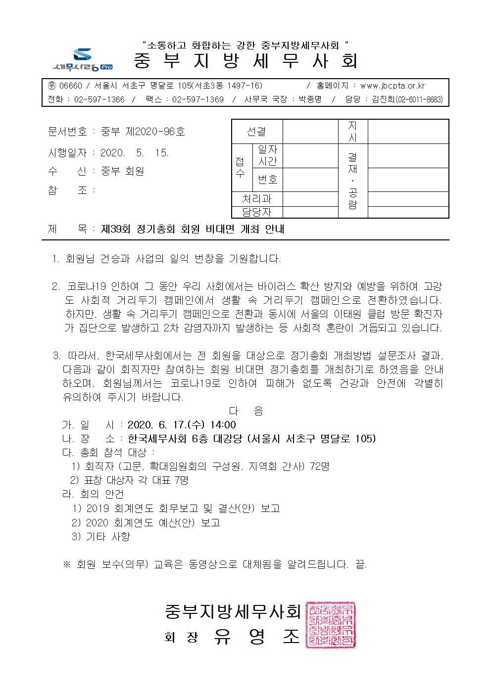 | 제39회 정기총회 회원 비대면 개최 안내 |