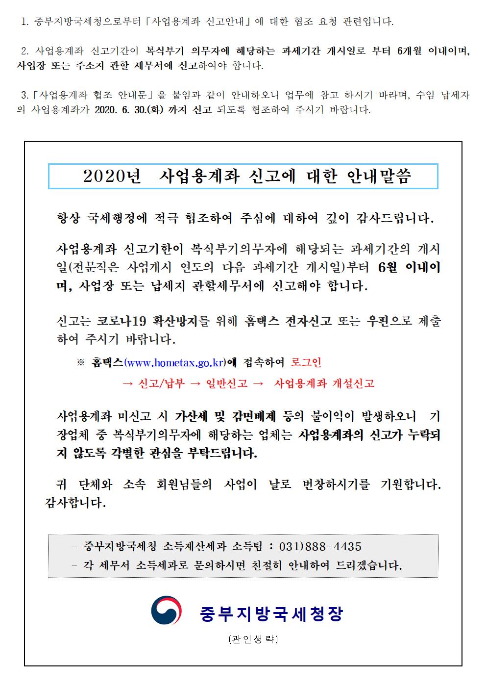 | 2020년 사업용계좌 신고에 대한 안내말씀 |