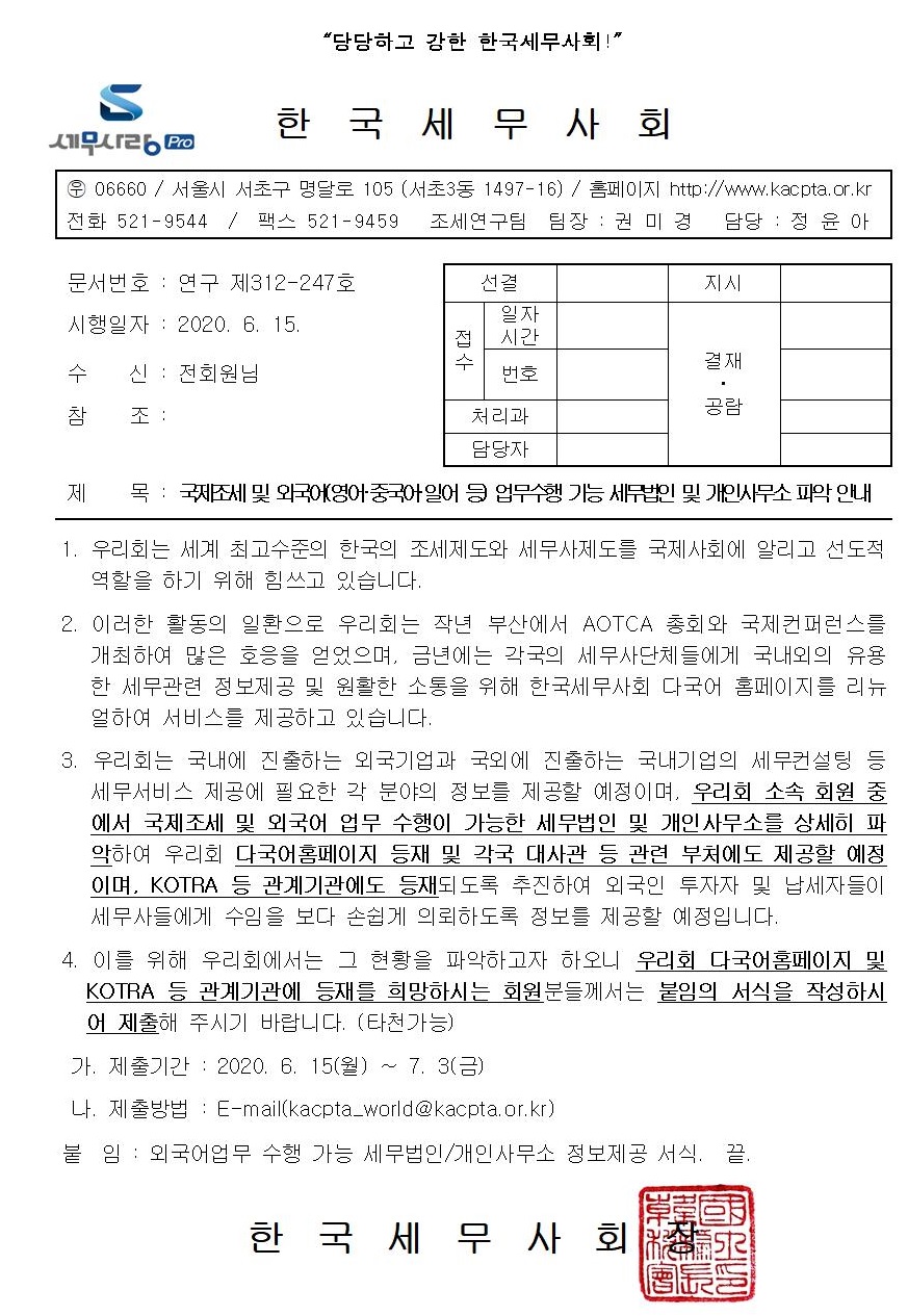 | 국제조세 및 외국어(영어·중국어·일어 등) 업무수행 가능 세무법인 및 개인사무소 파악 안내 |