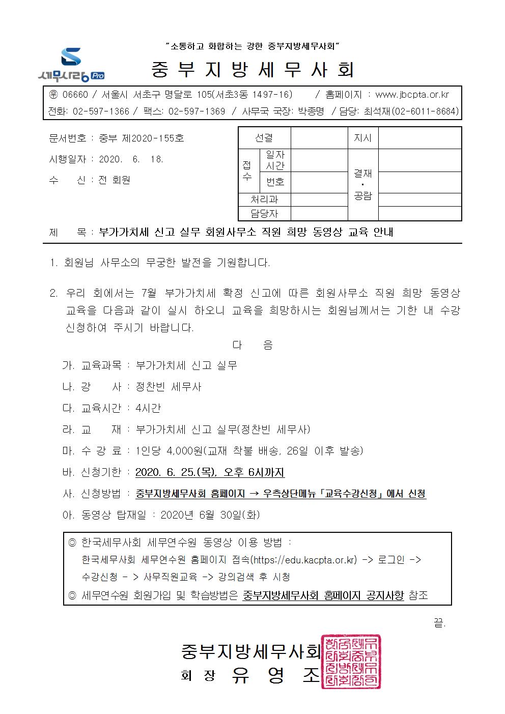 2020년 6월 회원보수교육 ‘주요세법 예규.판례 해설’ 실시 안내 |