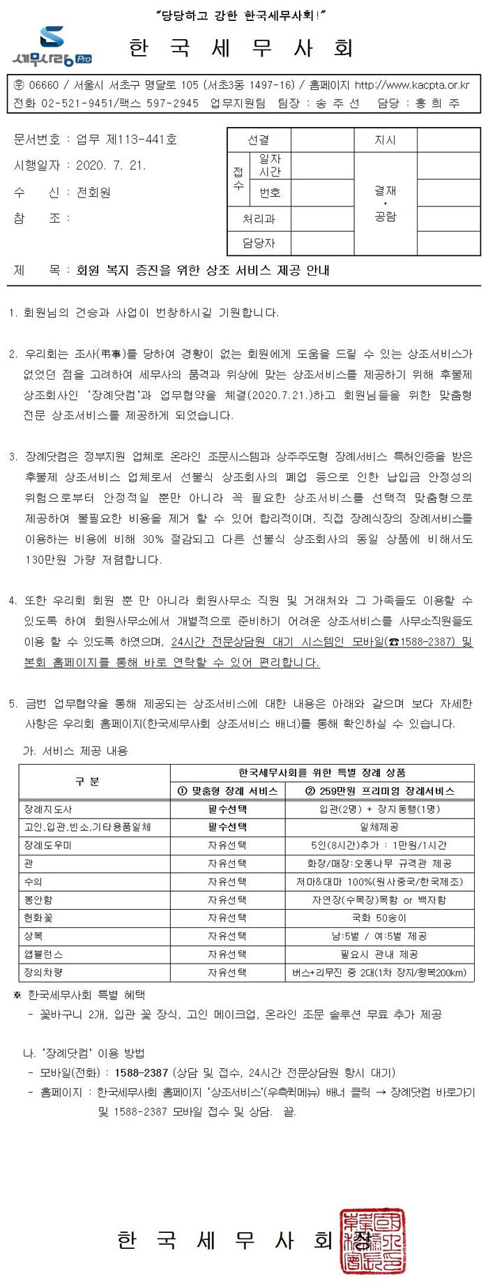 | 회원 복지 증진을 위한 상조 서비스 제공 안내 |