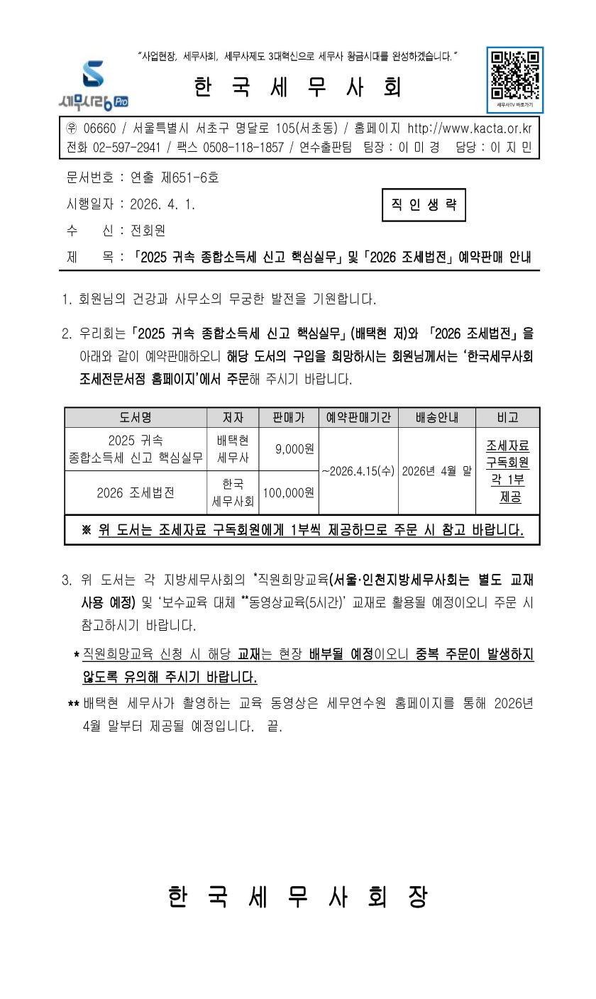 ¡¸2025 ±Í¼Ó Á¾Çռҵ漼 ½Å°í Çٽɽǹ«¡¹¹×¡¸2026 Á¶¼¼¹ýÀü¡¹¿¹¾àÆÇ¸Å ¾È³»