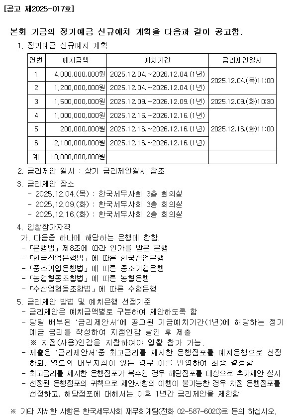 Á¤±â¿¹±Ý ½Å±Ô¿¹Ä¡ °èȹ °ø°í