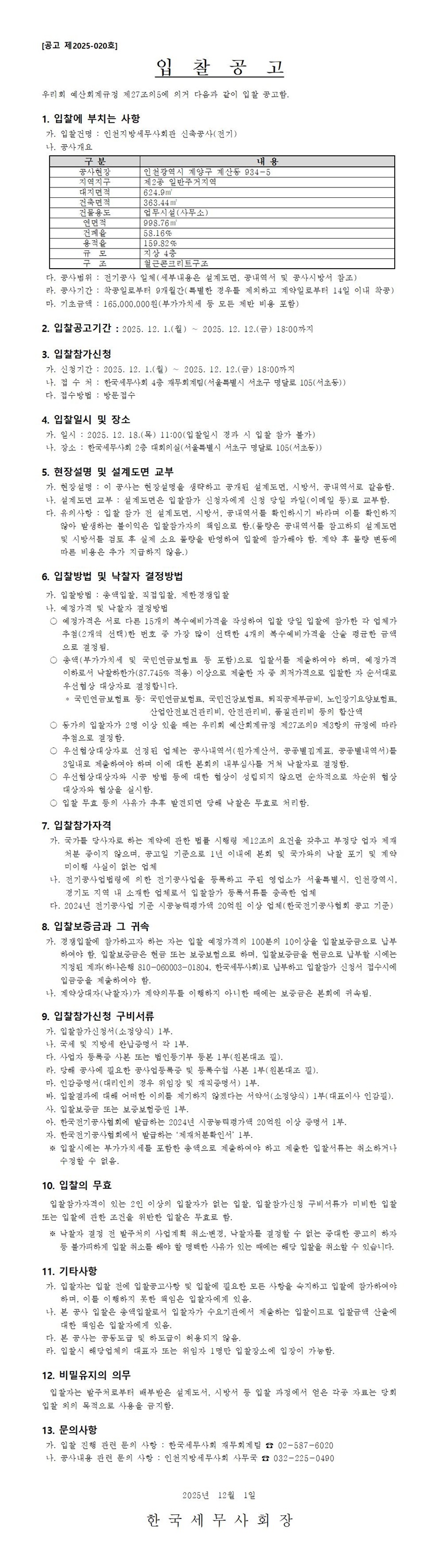 [ÀÔÂû°ø°í]¡¸ÀÎõÁö¹æ¼¼¹«»çȸ°ü ½ÅÃà °ø»ç(°ÇÃà) ½Ã°ø¾÷ü ¼±Á¤¡¹ÀÔÂû °ø°í