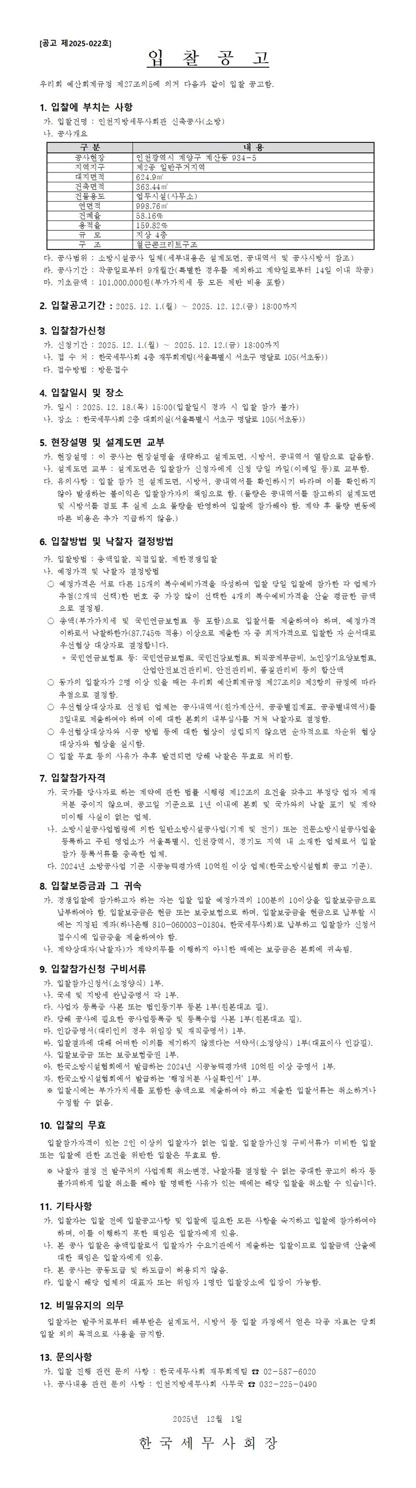 [ÀÔÂû°ø°í]¡¸ÀÎõÁö¹æ¼¼¹«»çȸ°ü ½ÅÃà °ø»ç(¼Ò¹æ) ½Ã°ø¾÷ü ¼±Á¤¡¹ÀÔÂû °ø°í