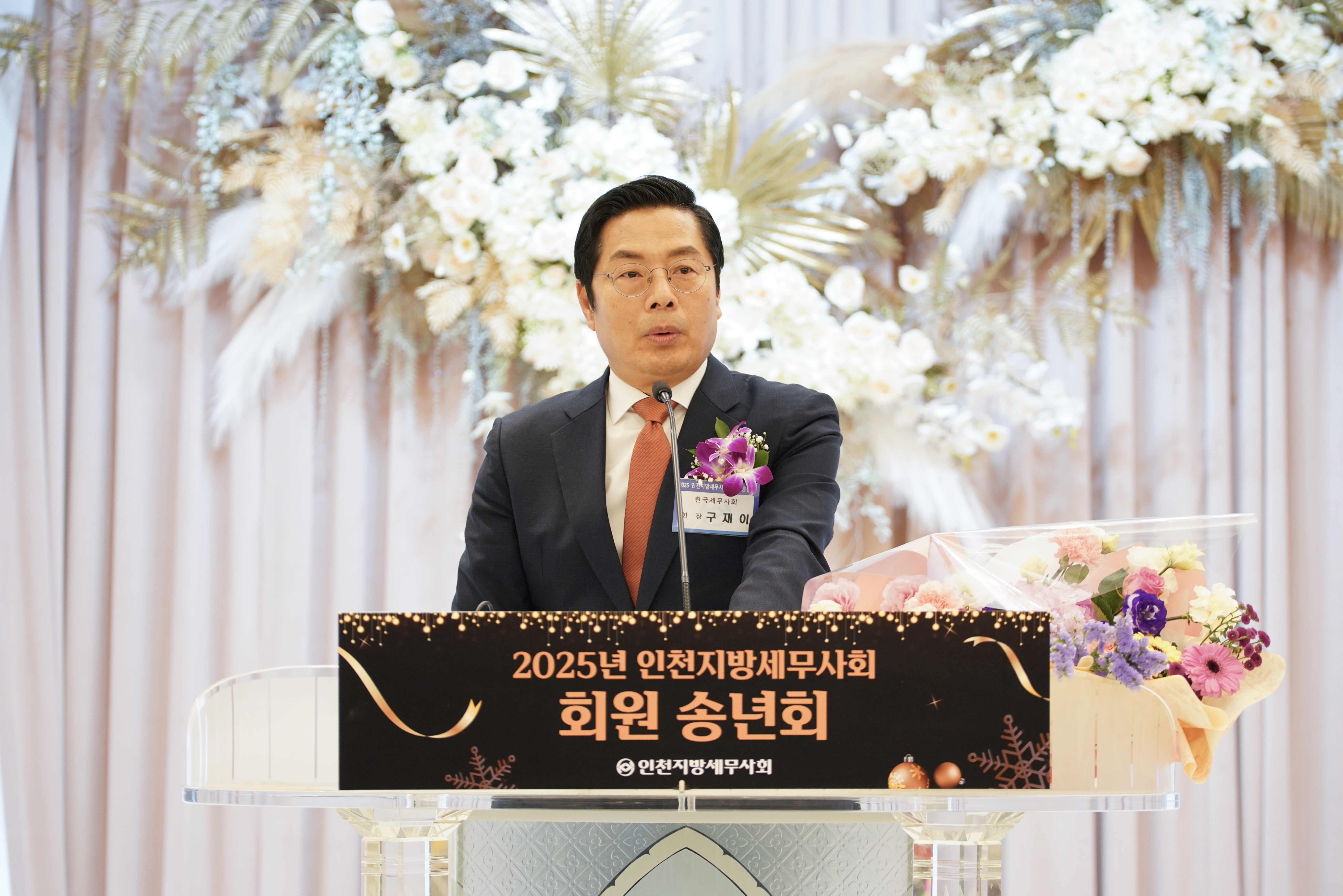 최병곤 인천지방세무사회장이 송년회에서 인사말을 하고 있다.