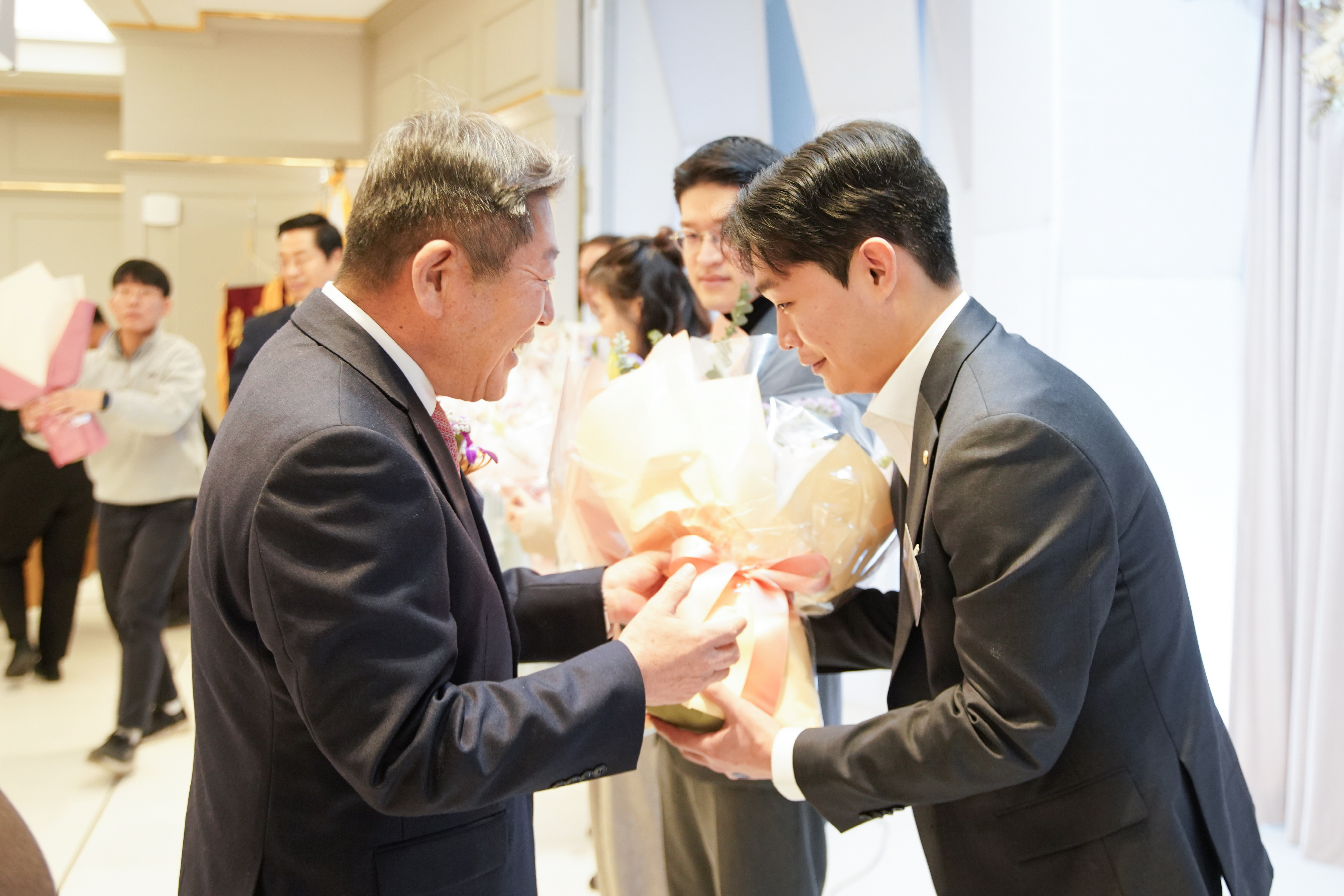 최병곤 인천회장은 내빈 축사에 앞서 전날 저녁 국회 본회의를 통과한 ‘세무사제도 선진화’ 세무사법 개정안을 위해 불철주야 노력한 구재이 한국세무사회장에게 축하 꽃다발을 전달했다.