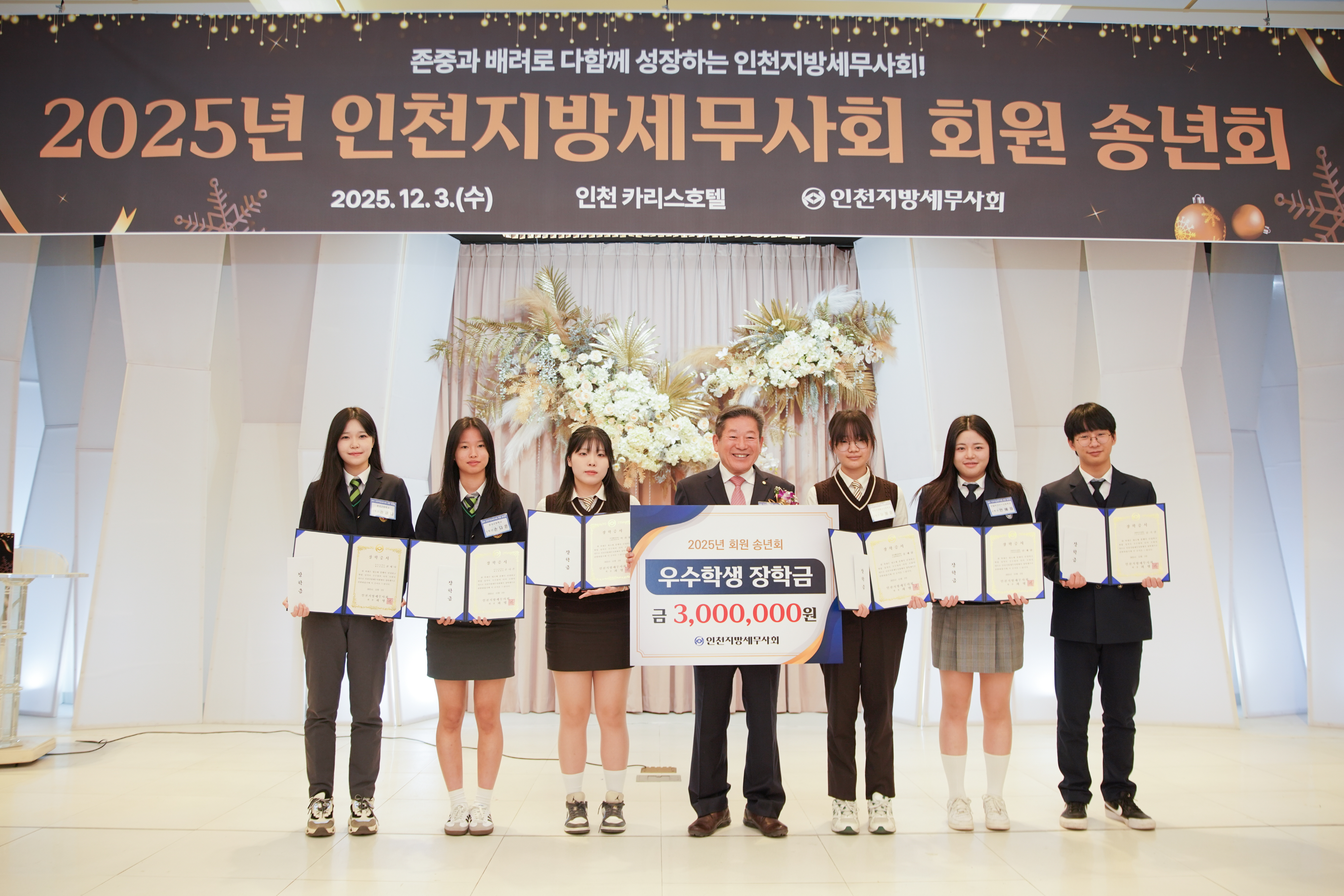 이날 인천지방회 송년회에서는 회무보고와 함께 신입회원 환영식이 진행됐으며 인천문곡고, 경기국제통상고, 신일비즈니스고 학생 6명에 장학금을 전달했다.