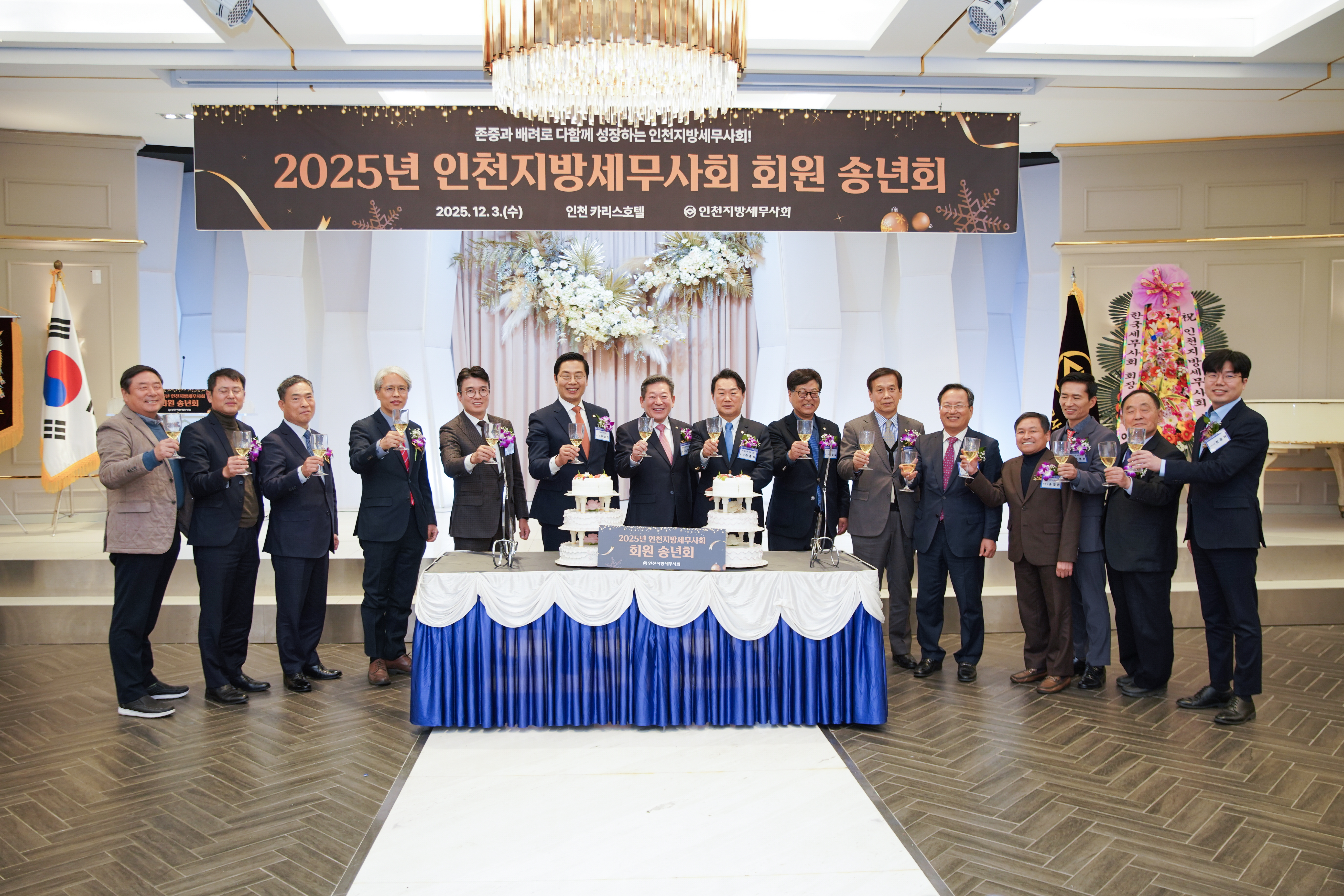 인천지방세무사회(회장 최병곤)은 3일 오전 11시 내빈과 회원 150여명이 참석한 가운데 인천 카리스 호텔에서 박종렬 총무이사의 사회로 2025년 회원 송년회를 성황리에 개최했다.