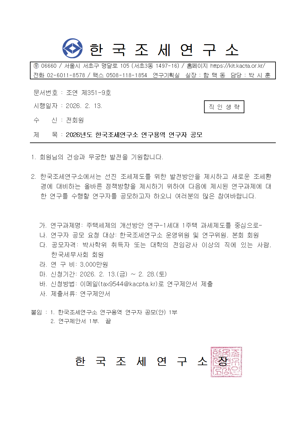 2026³âµµ Çѱ¹Á¶¼¼¿¬±¸¼Ò ¿¬±¸¿ë¿ª ¿¬±¸ÀÚ °ø¸ð