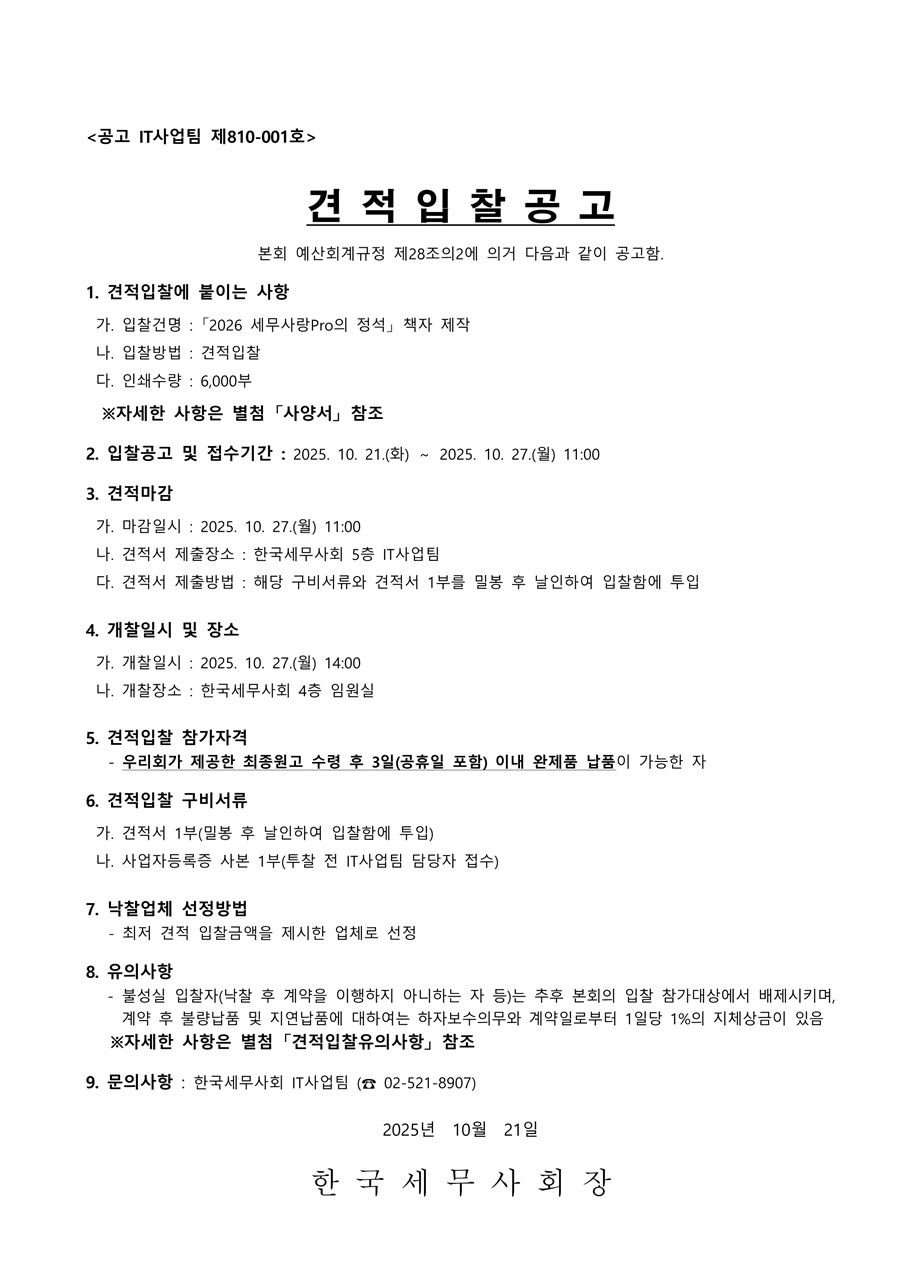 [°ßÀûÀÔÂû] 2026 ¼¼¹«»ç¶ûProÀÇ Á¤¼® Ã¥ÀÚ Á¦ÀÛ °ø°í